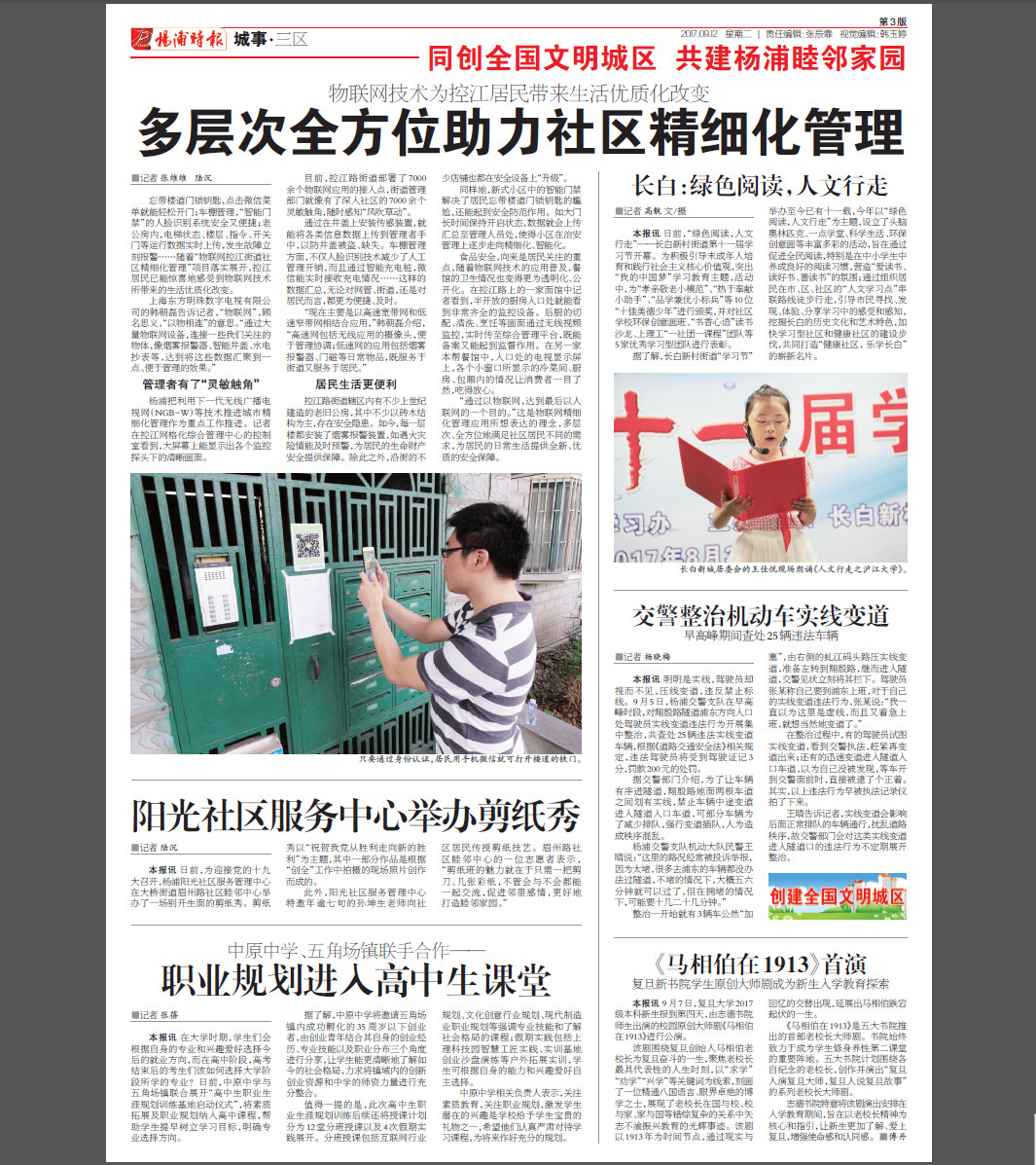 学校邀请五角场镇内成功孵化的35周岁以下创业者,由创业青年结合其自身的创业经历、专业技能以及职业分布三个角度进行分享,让学生能更清晰地了解如今的社会格局,力求将镇域内的创新创业资源和中学的师资力量进行充分整合。