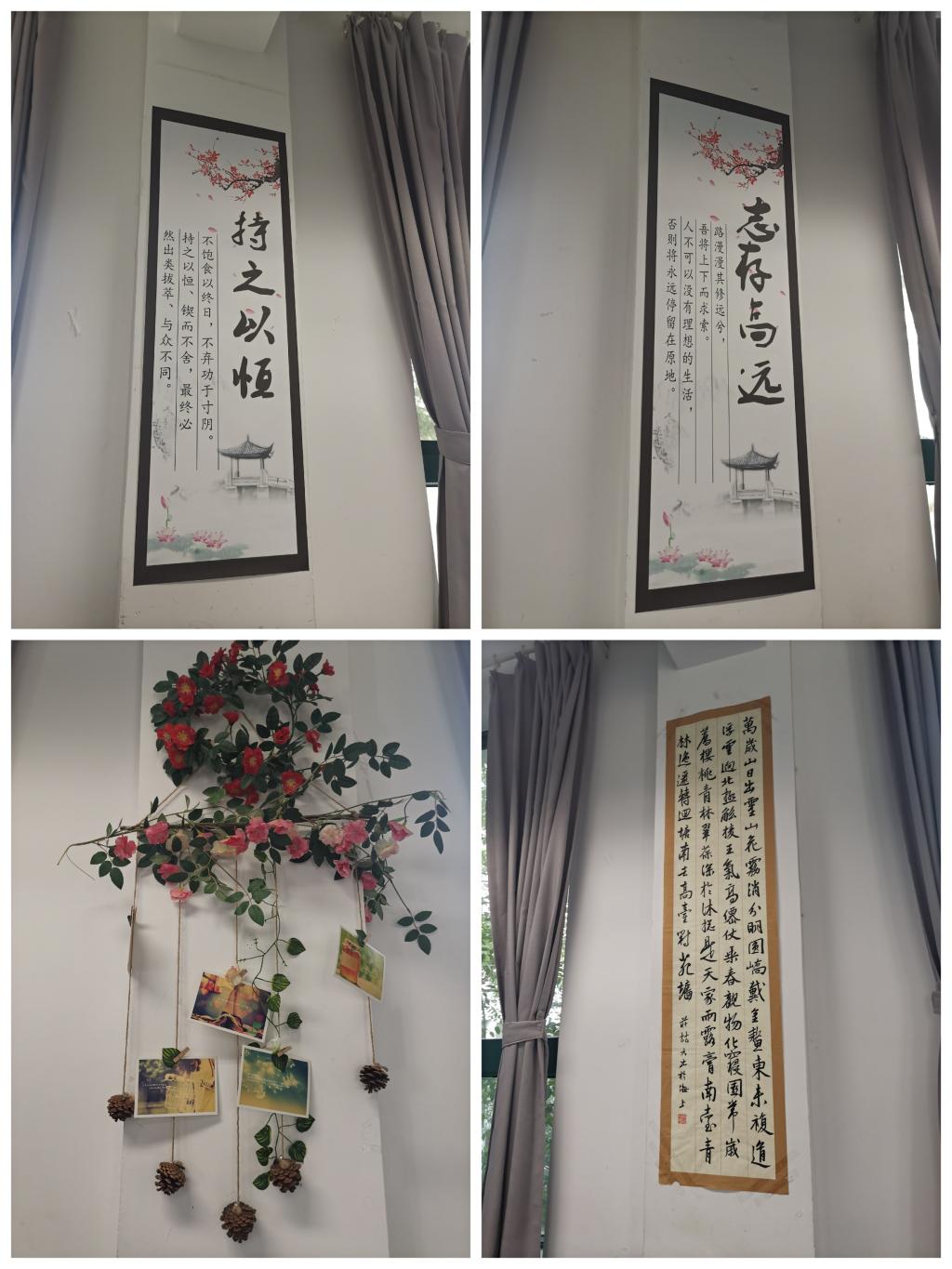 其他班级的布置也同样出彩。在教室外的窗台上,种满了绿植与鲜花,在保持教室环境美观的同时又能体现出对生活的热爱。照片墙与心愿墙上是同学们的在高中生活的点点滴滴一张张便签纸上写满了同学们的愿望和决心。