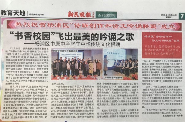 改革育人方式。学校研制《信息技术赋能教学学科指南》,本科率91.6%再创历史新高。基于11个创新实验室课程,开发激趣、培特、赋能选修课程群。出版《为学生成长重塑环境》,市区课题立项14人次。有17名区级各级骨干,获批见习规培学校,教师专业发展学校。教师获得诗教中国全国一等奖,市青教赛二等奖。我校吟诵课程市级展示在《新民晚报》报道,校创意节在《青年报》报道。