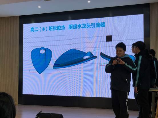 本次活动共收集来自高一高二年级的三十余件作品,涵盖了家居生活用品的改良设计,生态环保设施的创意设计,交通出行的便捷设计等等。在科技节闭幕式中设计者从设计理念、设计方案、作品展示等环节展开介绍。高二学生设计的“折叠伞收纳器”极好地解决了教室雨伞收纳问题,赢得同学们的喋喋称赞。高一学生设计的“数据线整理拓展器”与“厨房水龙头引流器”的巧妙构思,使同学们眼前一亮。同学们在生活中构思,不断提升创新思维;在实践中反思,逐步养成科学素养。
