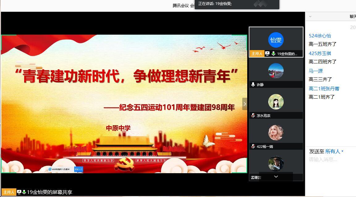 2020年5月2日,学校团委以“青春建功新时代,争做理想新青年”为主题开展了线上主题教育活动,这是一次教工团和学生团联合举办的团日活动,围绕温习革命历史,传承红色基因的主题,结合近期抗疫中时代青年体现出的担当精神,学校的师生们积极发言互动,活动取得了良好效果,并在师生代表共同宣读五四宣言中圆满结束。