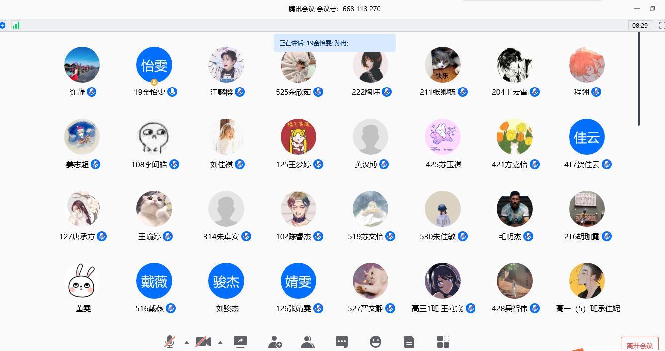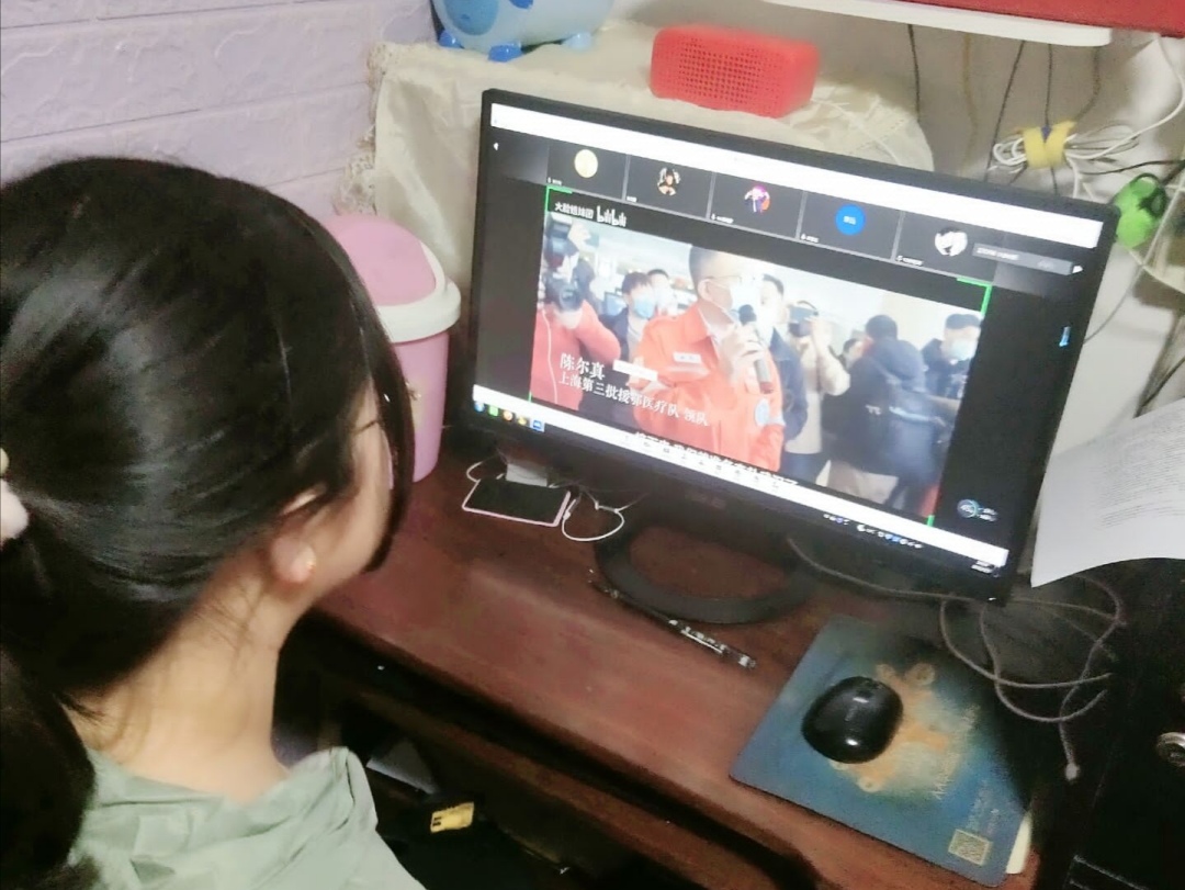 胡珈霓同学发言:“这次疫情给我们当代青年带来了很多思考,让我们尊重生命,热爱生命,”她还感谢了老师们在网课学习中的付出,“教育是极富有灵魂的,是因为你们才让我们树立了更正确的三观;学习本是枯燥的,但正是因为有了你们,知识点才变得栩栩如生。”