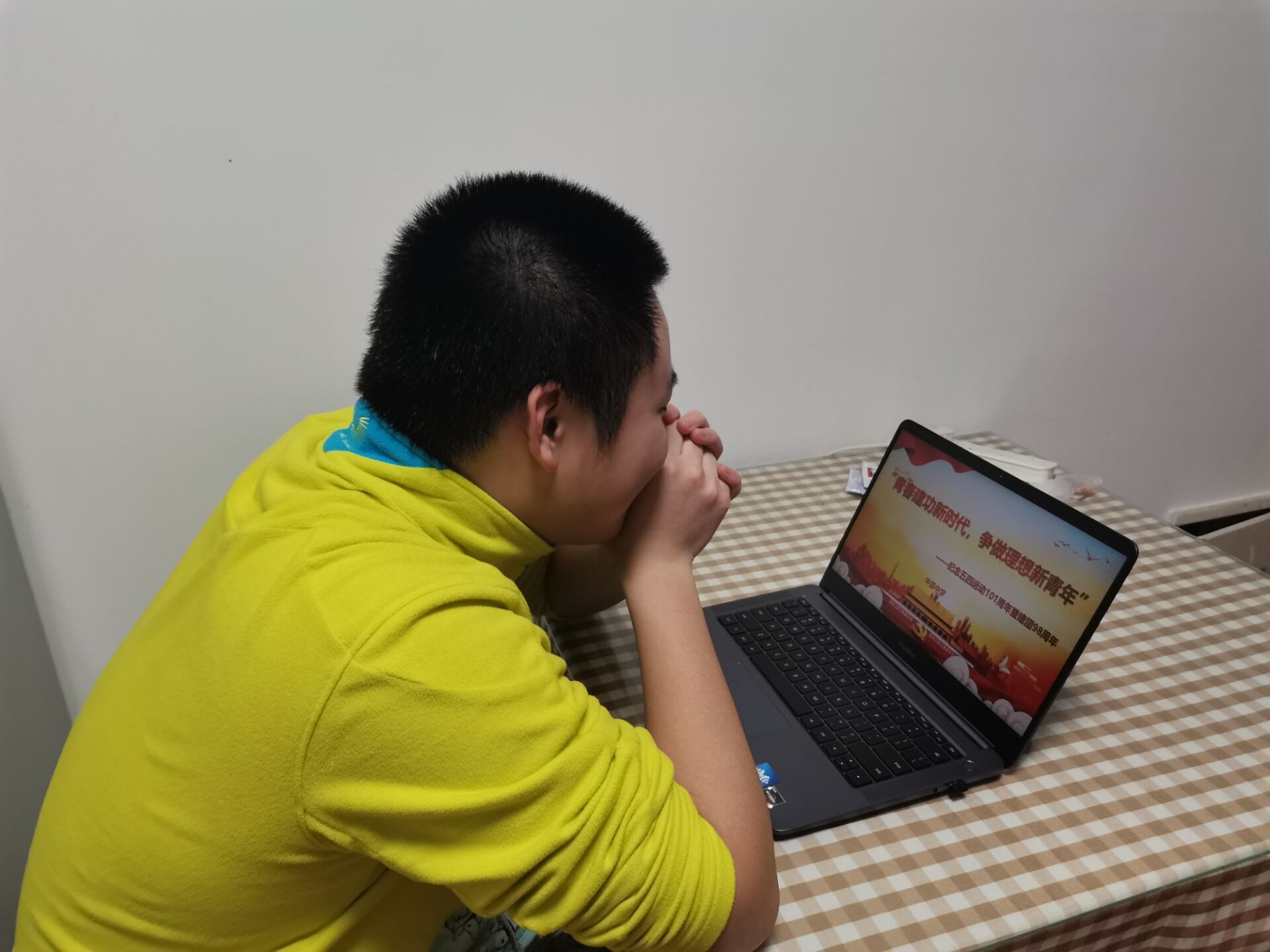 陈越同学分享道:“每个青年都应当珍惜这个伟大的时代,珍惜当下的资源和条件,在这个时代努力奋进,疫情永远阻隔不了对知识的向往。青年自五四运动以来一直以自己的敏锐与热血推动历史进步。青年人应担负起历史重任,让五四精神放射出更加夺目的时代光芒。”