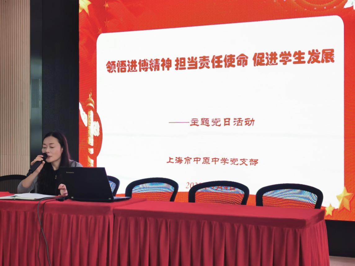 首先,学校党支部书记陈美莲书记就本次学习活动从四个方面进行主题发言。陈书记提出党员同志首先要聚焦学习,做好进博精神的宣传者。通过丰富多样的学习方式了解进博会的意义,领悟进博会的精神,做好进博会的宣传。其次,党员同志们要聚焦行动,做好进博精神的践行者。用自己的行动做好安全校园的守护者,学生成长的引领者以及教学改革的先行者。第三,要聚焦典型,表彰进博践行的先进者。支部深化围绕“凝心聚力进博会”,推出党员志愿服务活动,积极营造“进博先锋·党员行动”的浓厚氛围,开展“建功立业创一流”“青年文明号与进博同行”“巾帼建功创一流”等各类主题活动,积极调动工青妇力量,组织动员群团组织踊跃投身第三届进博会筹办的火热实践。选树先进典型,加强宣传,切实凝聚服务保障进博会的强大力量。
