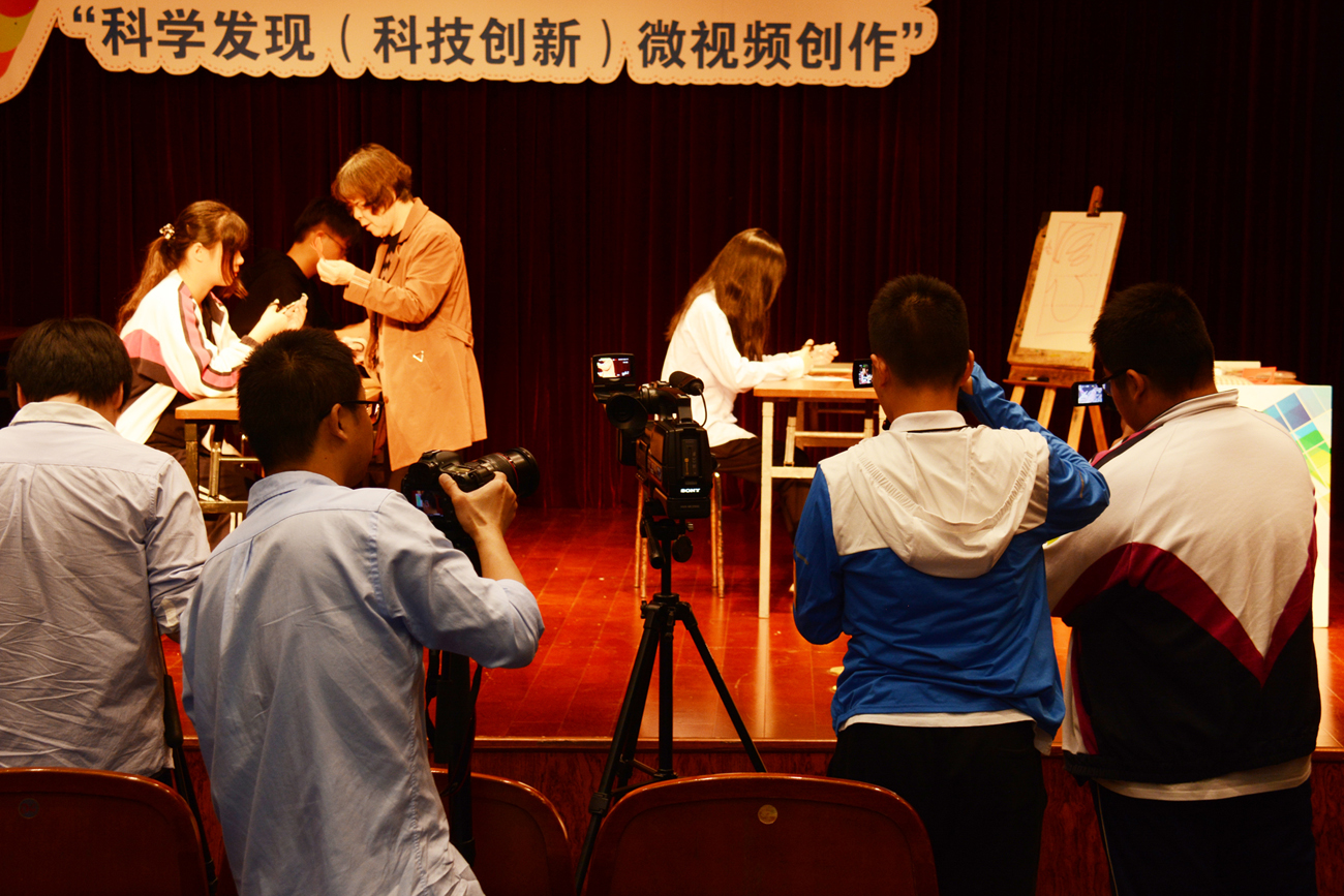 “影视教育的春天来了”。去年12月,《教育部、中共中央宣传部关于加强中小学影视教育的指导意见》:“各地教育行政部门和学校要积极开展校园影视教育活动,通过电影赏析、电影评论、电影表演、电影配音、微电影创作、影视节(周)活动等,营造浓厚校园影视文化氛围,让中小学生在看电影、评电影、拍电影、演电影中收获体会和成长。”研讨活动首先观赏中原师生刚刚拍成的校园科学发现微电影:《老油,新生》和《银项圈的情愫》,与会老师积极点评两部微电影的成功与不足,并对微电影怎么渗透学科知识原理发表了自己的看法和观点。