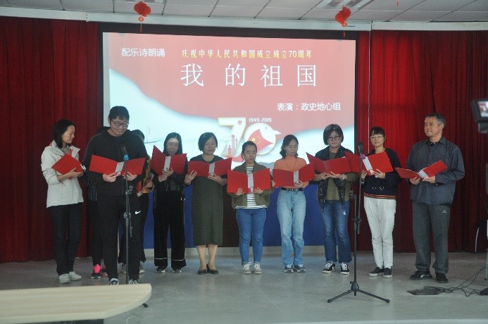 | 2019年10月18日下午,学校工会在学校五楼多功能厅组织了“唱红歌,诗朗诵”——庆祝祖国70周年华诞的工会活动。在准备阶段,学校各个教研组充分利用业余时间积极排练,以饱满的热情歌颂我们伟大的祖国。