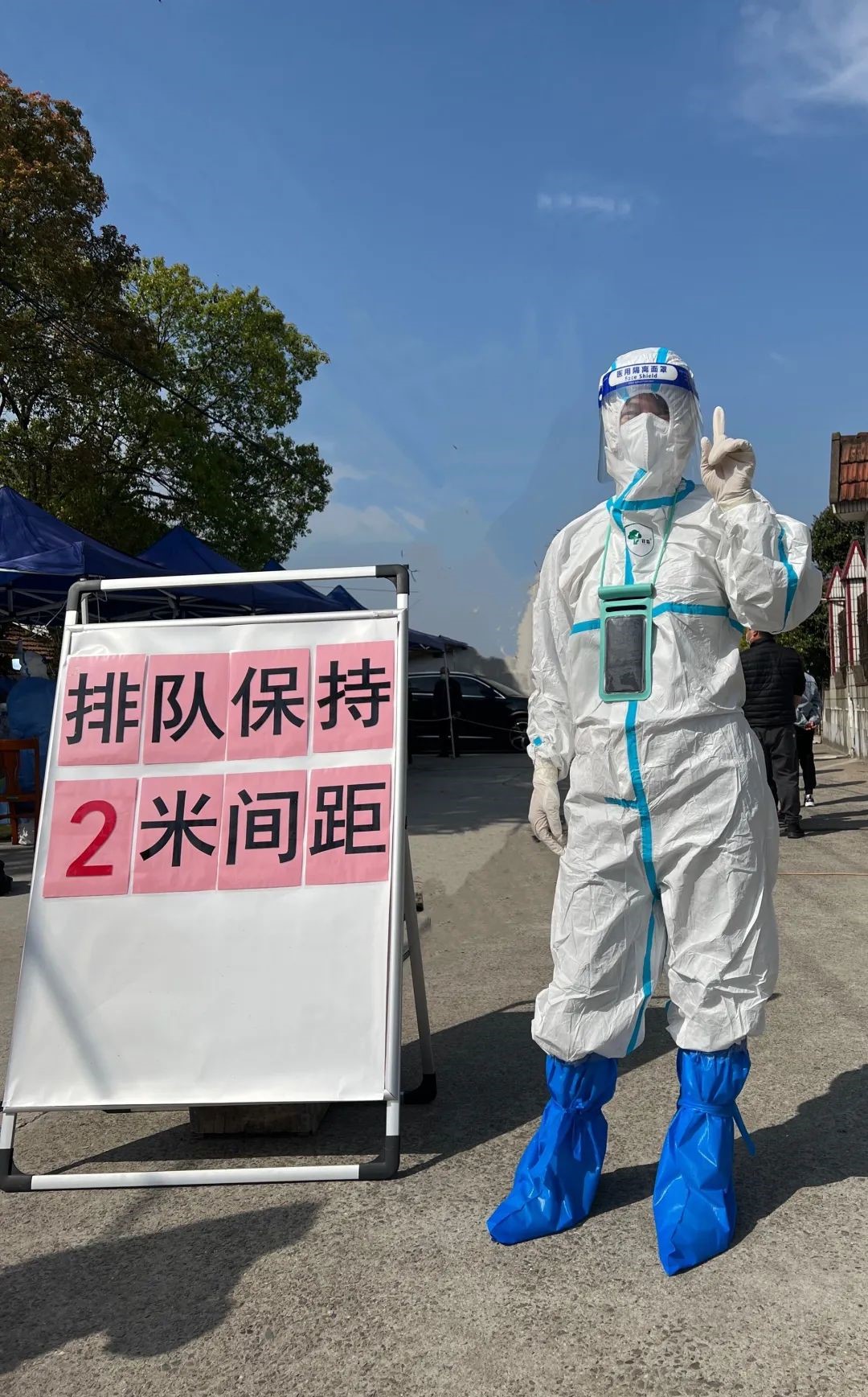 疫情就是命令,回到居住小区后,第一时间到居委报到,成为了核酸检测的协助员,穿上大白帮助居登记信息,维持秩序,为安全检测出力。在不做大白的日子里,为小区重新选择检测点、排查风险隐患、关心民生,为维护小区安全不断出谋划策。接下来一段时间,我们面对的是持续作战、艰苦作战,我们要拿出“团结一心、风雨无阻”的战斗作为,维护这座城市的安全、有序、活力!