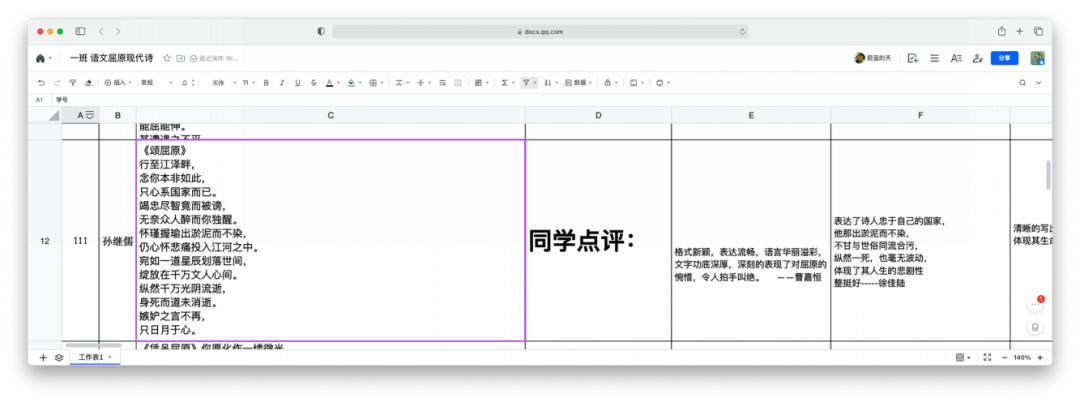 施老师依托语文课堂做好育人工作,她在教《屈原列传》时就用屈原忠贞不渝的爱国精神感染教育学生,让学生理解屈原以死殉国完成自我人格的升华必然选择,屈原的爱国精神、高尚节操具有永恒的文化价值,对中华民族具有深远的影响,由此使抗疫中的学生更加坚定爱国信念,坚定抗疫信心。