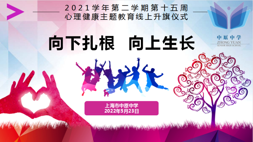 特殊时期,特别经历。不同寻常的学习和生活体验中,同学们的身心健康与快乐成长一直是老师们每天的牵挂。为进一步加强疫情防控期间学生心理健康教育,有效缓解学生因疫情及长期居家学习生活带来的心理压力,以积极乐观的心态迎接每一天。5月23日上午8:00,上海市学校全体师生集结“云端”,参加了“向下扎根 向上生长”心理健康主题教育线上升旗仪式。
