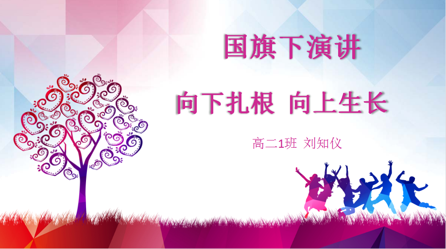 高二1班刘知仪同学国旗下演讲“向下扎根,向上生长”。“我作为入团积极分子,始终保持着为了追求理想而努力奋斗,为了达成梦想而默默实践,为了在某一方面有所成就而锲而不舍的,脚踏实地的付出实际行动的追求。”呼吁同学们都有“向上生长,向下扎根”的追求,拥有一颗不断向上成长的心,坚守一份向下扎根的勇气,秉持一种一如既往的努力和永不停歇的奋进精神,拥有一技之长开创出属于自己的未来。