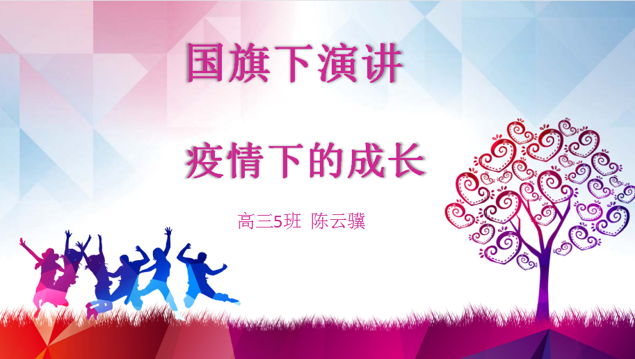 居家学习期间,同学们的心态和情绪是影响学习效率的重要因素。特别是高三学子即将面临高考,保持良好的心态尤其重要,高三5班陈云骥同学以“疫情下的成长”为题做国旗下演讲,讲述特殊时期如何进行心理调节,促进个人成长。“线上学习以来,我关注上海疫情信息,尽量杜绝负面消息,屏蔽网上那些‘噪音’,让心态平和一些,更专注于学习。在备考的过程中,每天让今天的自己比昨天的自已提高一点点,夯实基础,向中高难题发起挑战且尽量战胜它,这就是进步。状态不好、学习效率低的时候,我会抬头看看窗外,或者起身至窗口,呼吸一下新鲜空气,或者在网络上和同学聊聊天,舒缓一下自己的心情。”