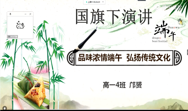 高一4班邝赟同学以“品味浓情端午 弘扬传统文化”为题作国旗下演讲。