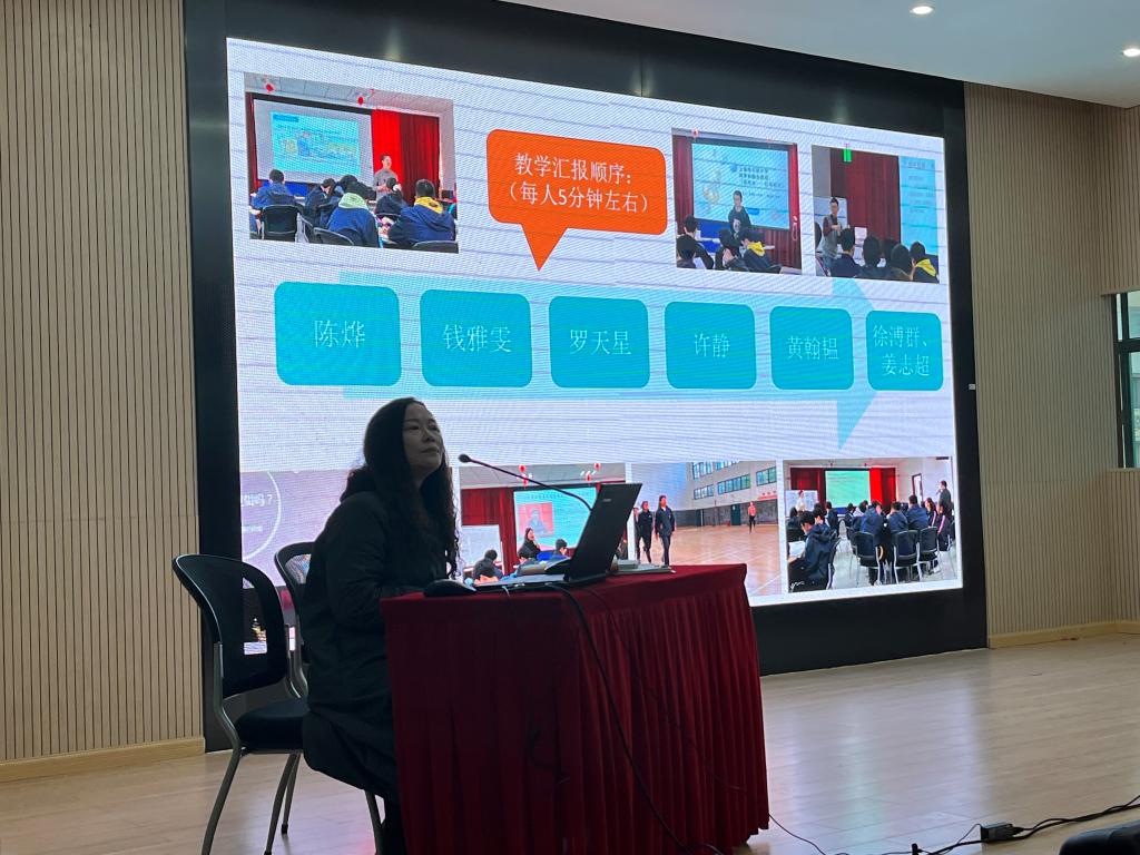 六位青年教师分别从“素养具体化”、“知识结构化”、“活动情境化”、“思维高阶化”、“情感体验化”以及“评价多元化”这六个方面介绍了自己的教学设计。同时结合组内教师的点评,从自身和课堂效果出发,对比赛课进行了经验总结和反思。