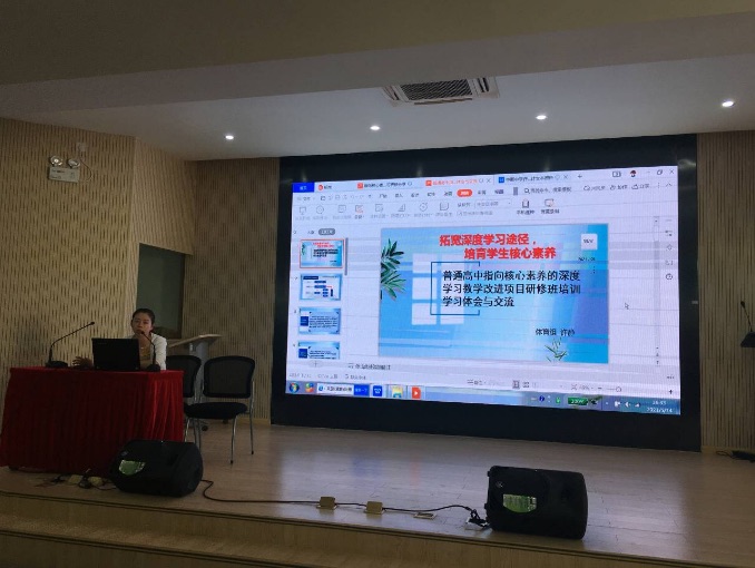 在本次微讲坛活动中,刘勇、朱焱、张念恩、许静四位老师分别从物理学科、化学学科、生物学科和体育学科四个学科角度出发,阐述了各自在参加“普通高中指向核心素养的深度学习教学改进项目研修班”后获得的关于“双新”、单元教学设计、学生活动设计、落实核心素养等新名词、新理念的思考。