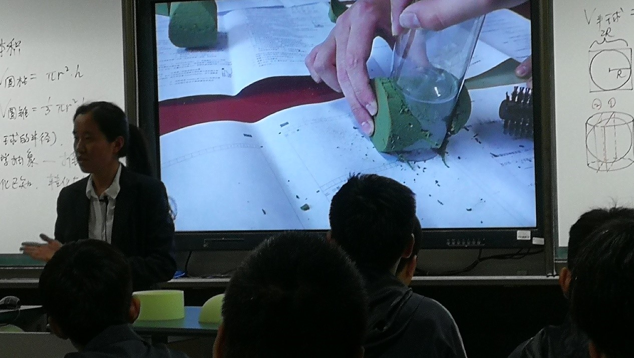 新课标要求提供丰富的实物模型和利用计算机软件呈现空间几何体,帮助学生认识空间几何体的结构特征,为理解和掌握图形几何性质(证明)提供直观依据。能够运用图形的概念描述图形的基本关系和基本结果,并简单应用。孙老师课前做了充足的准备,精心准备了丰富的实物模型,还制作了Geogebra课件来辅助教学,帮助学生更好的理解“牟合方盖”,她还设计了两个学生实验,让学生更好的参与到了课程和学习中去,体现了“深度学习”的指导思想。