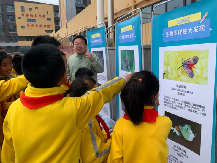 新区中心小学依托山、西江流域湿地、山区林场等教育资源,在校内制作了“五感园”“惊蛰园”等,让学生完成跨学科实践。校园还强化校家社协同,通过“小手拉大手”等方法,构建立体化天然教育资源网络。