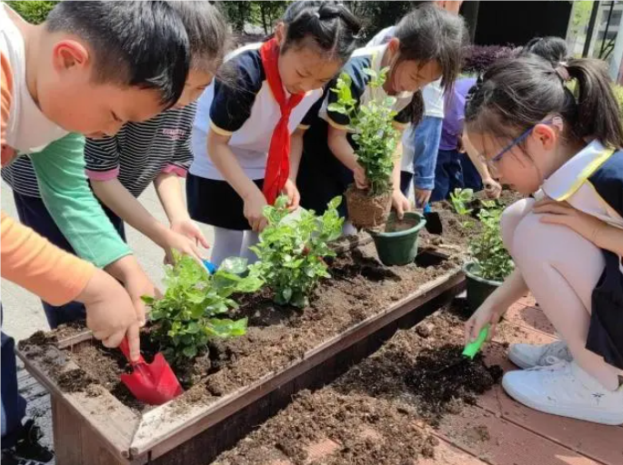 每年春天,這兒的孩子都會拿上勞動工具前往校員的“茉莉花員”,挖坑放苗、扶樹正苗、揮鍬培土、鏟土填坑、踩實澆水……妳壹鏟、我壹桶壹起種下壹片茉莉花田。